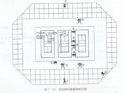 大型羽毛球比賽電視轉播的機位圖如圖:7-111所示,該圖與表7-55配合使用。