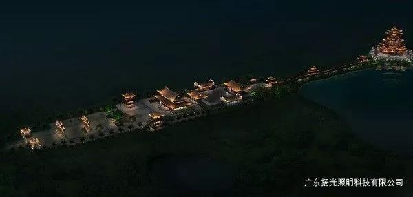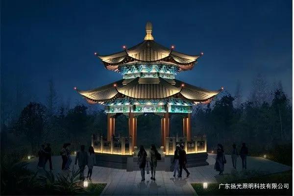遠瞻亭:建筑燈光亮度為整個軸線最低的區域,設計師以多種燈光設計手法體現飛檐,斗拱,主柱精致建筑結構。