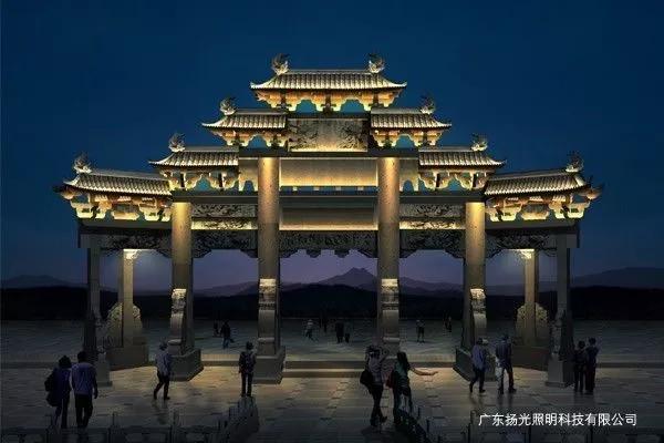 牌坊:整體燈光選擇的純凈,莊重以凸顯其宏偉的建筑氣場及建筑結構。