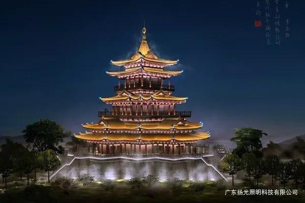 魁星閣:瓦面采用大面積暖黃光鋪陳,突出建筑塔樓的雄偉,輝煌,同時建筑內側的光色也讓木質結構更加有質感。