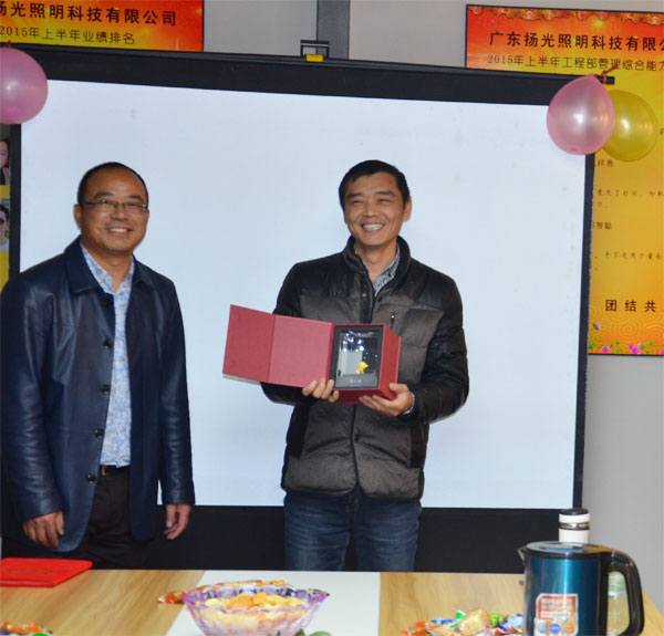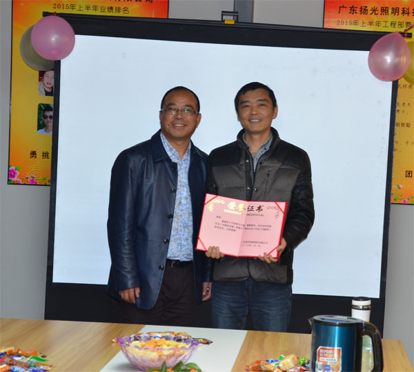 揚光照明每年都要為跨進10年工齡的老員工舉行表彰儀式,并授予榮譽獎?wù)隆D憧矗衲昃陀幸晃唬褪俏覀児镜墓こ滩靠偙O(jiān)——郭總。