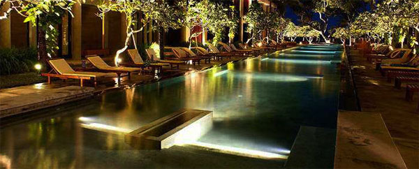 這類照明可以將燈具布置在水池底部,也可以布置在水池周邊。如果在池底布置燈具,則池底或池壁的圖案及材質(zhì)都可以成為重點(diǎn)表現(xiàn),這些部分應(yīng)采用反射比較高的材料。水池類反射水景的照明可以將燈具布置在水池的底部,也可以布置在池周邊。如果在池底布置燈具,則池底或池壁的圖形和材質(zhì)是照明要重點(diǎn)表現(xiàn)的景觀,這些部位應(yīng)采用反射比較高的材料,但是如果反射比過(guò)高,則會(huì)使整體的光構(gòu)圖顯得過(guò)于突兀,這時(shí)可以通過(guò)調(diào)整光源的功率,選擇小瓦數(shù)的光源,以達(dá)到相對(duì)的平衡,在池外安裝燈具的照明可以取得水面發(fā)光效果。