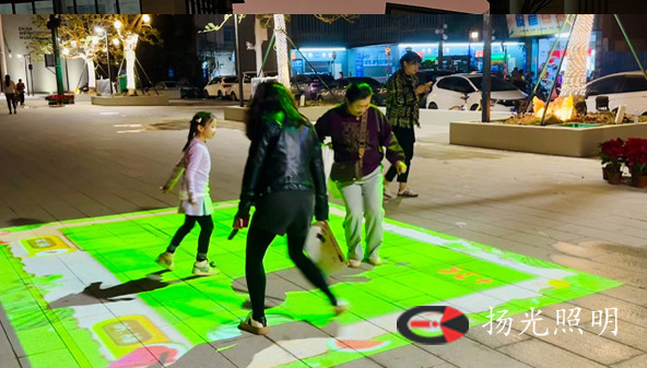 投影互動(dòng):利用投影設(shè)備將虛擬元素投射到地面或建筑物上,游客可以通過與虛擬元素的互動(dòng)來改變燈光效果。例如,游客可以在地面上踩踏虛擬元素,使其消失或變化。
