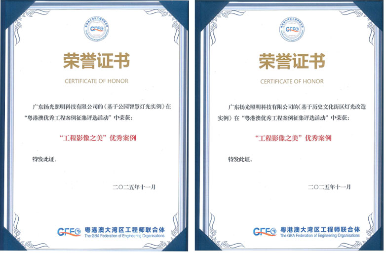 2025年11月30日,由中國(guó)工程師聯(lián)合體指導(dǎo),粵港澳大灣區(qū)工程師聯(lián)合體、中國(guó)科技發(fā)展基金會(huì)、香港工程院等單位聯(lián)合舉辦的第四界大灣區(qū)工程師論壇及大灣區(qū)優(yōu)秀工程頒獎(jiǎng)儀式在廣州華南理工大學(xué)國(guó)際校區(qū)隆重舉行。在此次評(píng)選中,揚(yáng)光照明憑借“東莞記憶首開區(qū)歷史文化街區(qū)燈光工程項(xiàng)目”及“東莞科學(xué)公園智慧燈光項(xiàng)目”雙雙榮獲“工程影像之美”優(yōu)秀案例稱號(hào),彰顯企業(yè)在照明工程領(lǐng)域卓越的技術(shù)實(shí)力與美學(xué)追求。