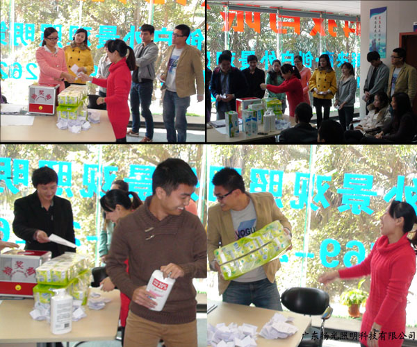 活動采取員工手上給公司做出貢獻獲得的積分卷放到抽獎箱里混亂后,由管理層及以上人員進行抽取積分卷,抽到的員工就有資格抽取獎品?!翱鞓分苣被顒又幸恢寥泉劄楝F金獎勵,其它為各種各樣的物品,獎品豐厚。